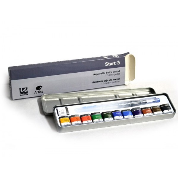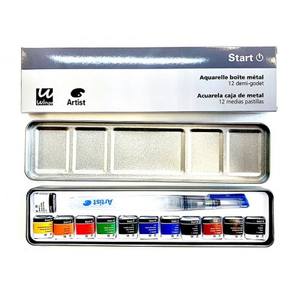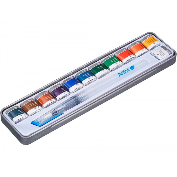 Aguarela artist start caixa metal 12 cores sortidas + pincel recarregavel.