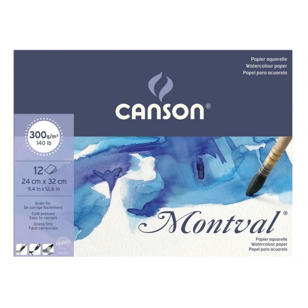Bloco papel Aguarela Canson Montval 24X32cm 300 grs 12 Folhas.