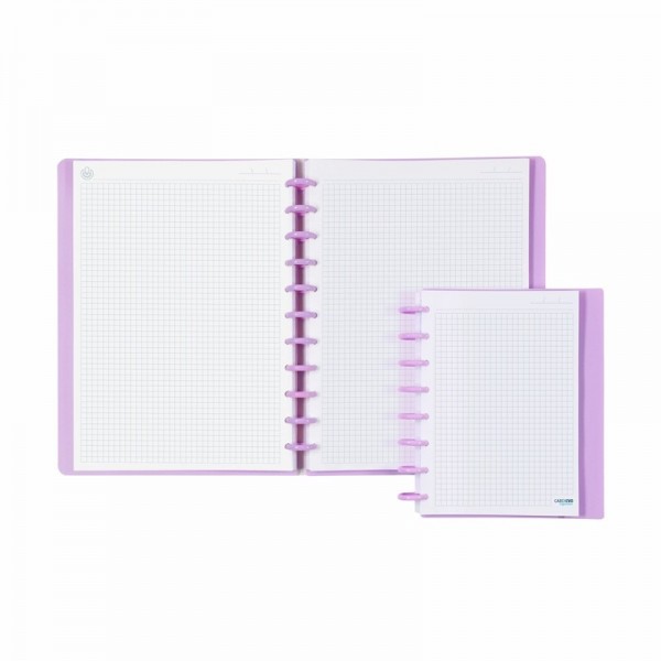 O sistema de encadernação com discos e folhas extraíveis permite quando o caderno estiver cheio, guardar as folhas e substituí-las
