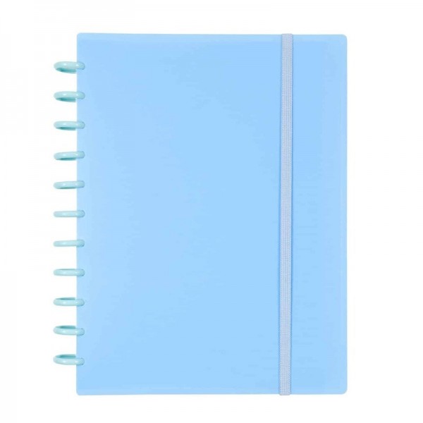 Este caderno A4 possui uma capa em propileno resistente e duradoura e inclui inicialmente 100 folhas pautadas.