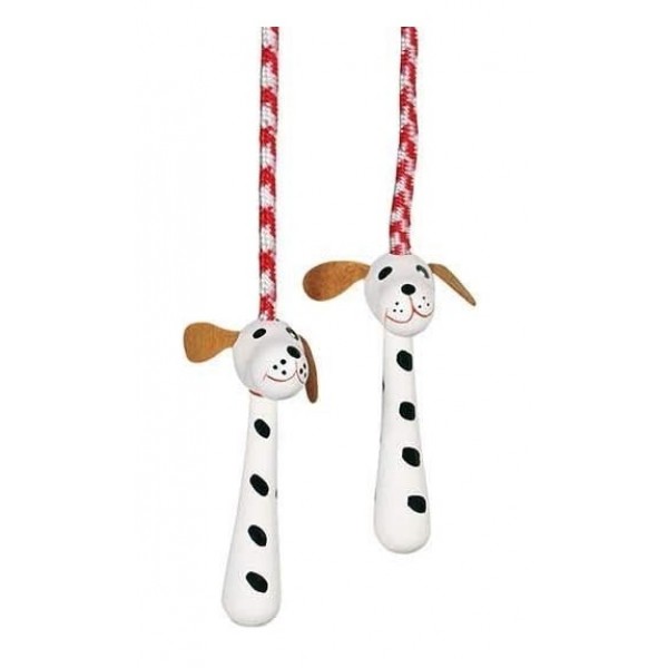 Corda para saltar, cabo figura de cão em madeira.