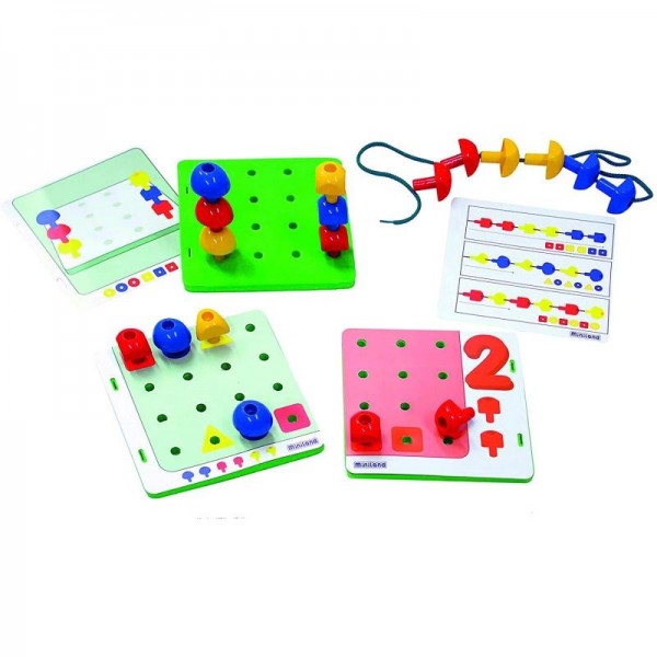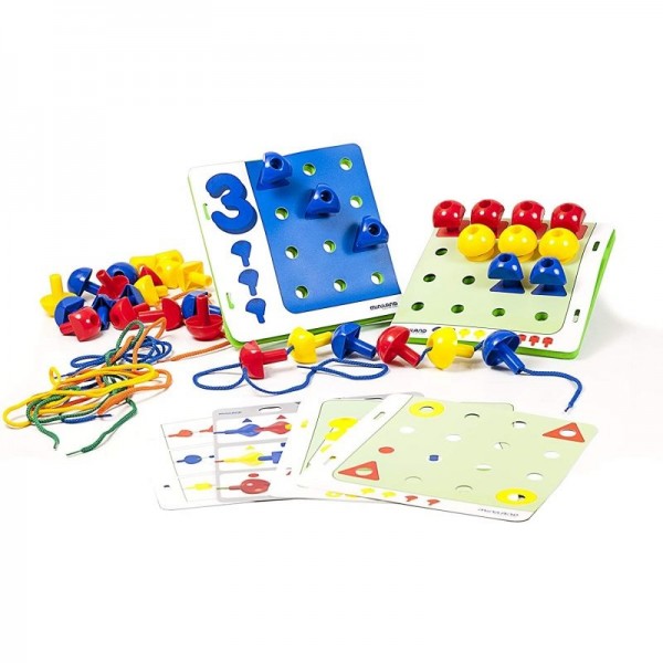A criança deve encontrar o local certo, orientar-se no espaço, transpor um diagrama de um plano horizontal para um plano vertical ou reproduzir o sequência proposta em uma renda enfiando as unhas.