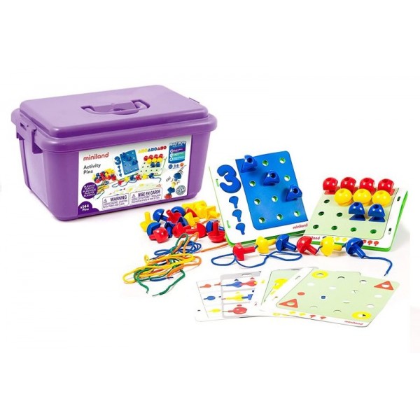 Contém: - 4 placas de espuma de borracha de alta densidade 19x19 cm pré-perfuradas com 16 orifícios. - 144 pinos grandes, 3 formatos e cores sortidas.
