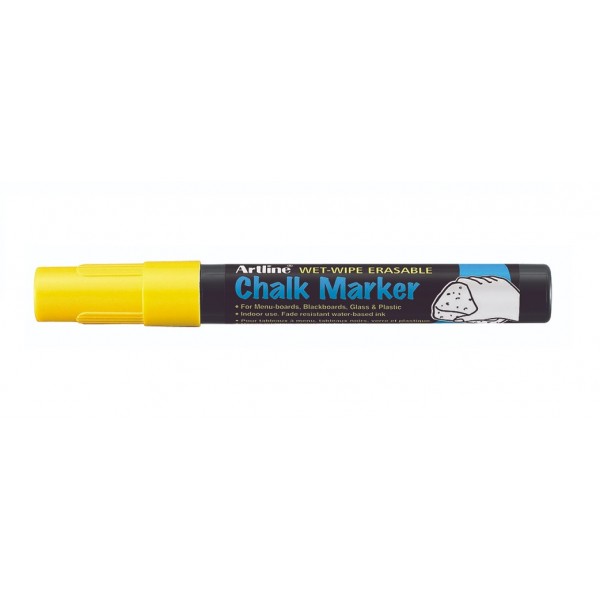 O marcador de giz liquido da Artline permite escrever sobre superfícies não porosas, como vidro, plástico e quadros de ardósia.