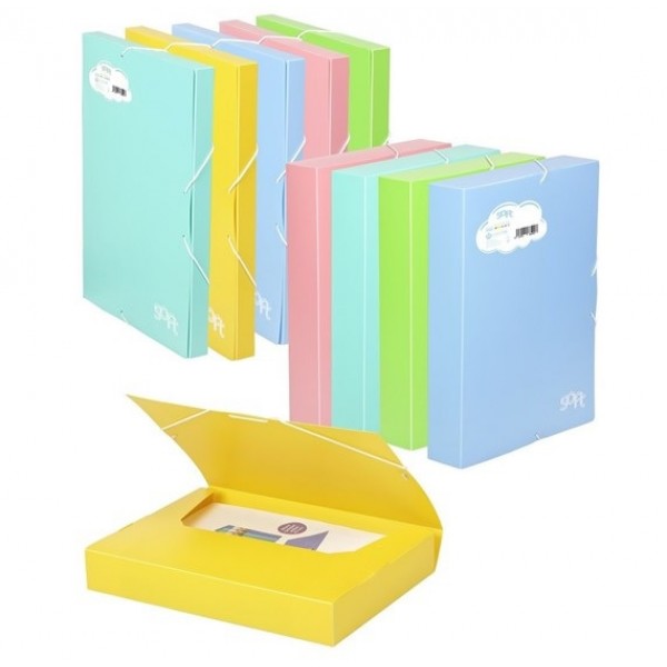 PASTA DE PROJECTOS EM TONS PASTEL.Caixa Projectos feita de polipropileno, soft c/elásticos. Tam..