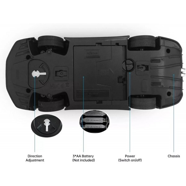 Carro telecomandado, funciona a pilhas (não incluídas).