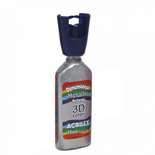 Tinta Dimensional Metálica Relevo 3D PRATA ACRILEX.